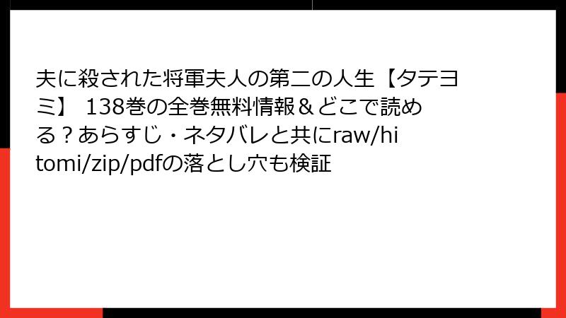 夫に殺された将軍夫人の第二の人生【タテヨミ】 138巻の全巻無料情報&どこで読める?あらすじ・ネタバレと共にraw/hitomi/zip/pdfの落とし穴も検証