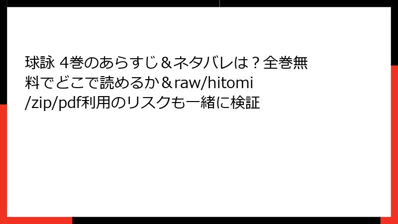 『球詠』4巻を海賊版サイトで読むのは、法的・セキュリティ・品質・倫理の多角的なリスクを伴います。これらを理解し、正規の電子書籍や書店を利用しましょう。安全でクリーンな環境で、作品を心から楽しむのが真のファンです。あなたの選択が、漫画文化を守る一歩になるはず! 感想があればコメントでシェアを。