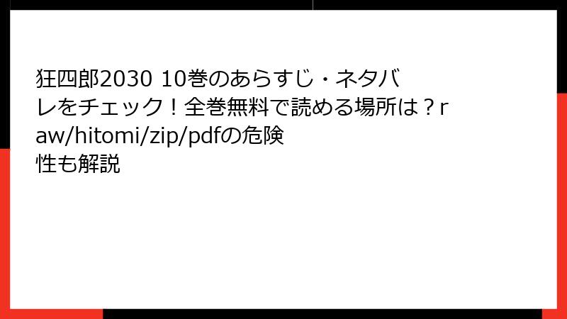 3. 海賊版サイトで漫画を読むリスク:『狂四郎2030』をraw/hitomi/zip/pdf/漫画バンクなどで閲覧する危険性