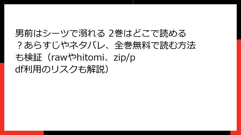 BL漫画の人気作『男前はシーツで溺れる』を、raw、hitomi、zip、pdf、漫画バンクなどの海賊版サイトで無料で読もうと考える人もいるかもしれません。でも、そんな選択には深刻なリスクが伴います。この記事では、海賊版サイトを利用する法的・セキュリティ・倫理的な危険性を詳しく解説。ブログ風に読み応えを加え、知っておくべきポイントを深掘りします。合法的な手段で楽しむ重要性を再確認しましょう。