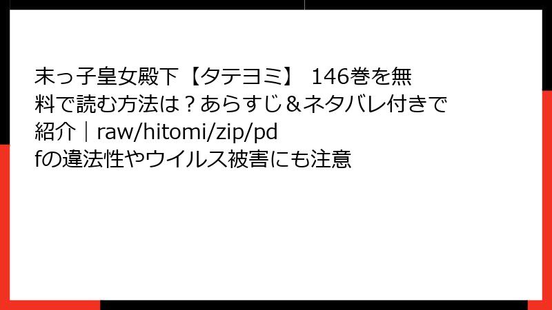 こんにちは、漫画ファン必見の記事です! 人気のファンタジー転生作品「末っ子皇女殿下」を楽しむ方法として、海賊版サイトが浮上することがありますが、これには深刻なリスクが伴います。raw、hitomi、zip、pdf、漫画バンクなどの違法サイトを利用すると、思わぬトラブルに巻き込まれる可能性が高いんです。この記事では、そんな海賊版サイトの危険性を多角的に掘り下げます。法的問題からセキュリティの脅威まで、詳しく解説していきますので、参考にしてくださいね。合法的なプラットフォームで楽しむのが一番ですが、まずはリスクを知ることから始めましょう。