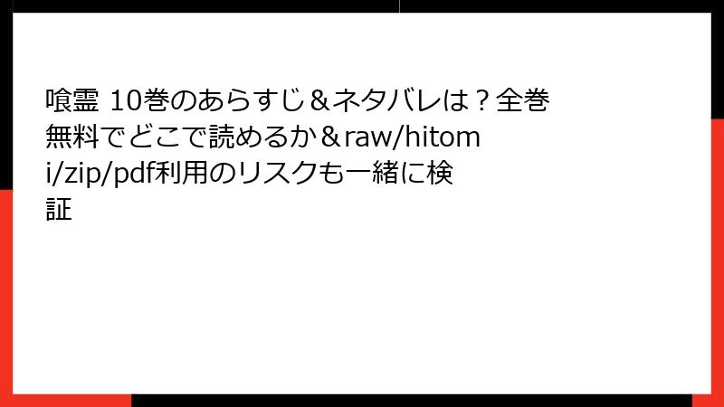 『喰霊』をraw/hitomi/zip/pdf/漫画バンクなどで読むリスクは、法的・セキュリティ・品質・倫理の観点から多岐にわたります。これらを総合すると、利用は推奨できません。代わりに、合法的なプラットフォームを選ぶことで、安全で質の高い体験が得られます。リスクを理解し、責任ある選択を心がけましょう。