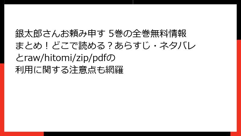 人気漫画『銀太郎さんお頼み申す』を無料で楽しみたいという誘惑から、海賊版サイトに手を出してしまう人もいるかもしれません。しかし、raw、hitomi、zip、pdf、漫画バンクなどの違法アップロードサイトを利用するのは、想像以上のリスクを伴います。これらのサイトは著作権を侵害したコンテンツを無断で配布しており、利用者は法的・セキュリティ的なトラブルに巻き込まれる可能性が高いのです。本記事では、そんな海賊版サイトのリスクを詳しく解説。読み進めることで、正規ルートで楽しむ大切さがわかるはずです。※本記事は一般的な情報を基にしています。実際の利用は自己責任でお願いします。