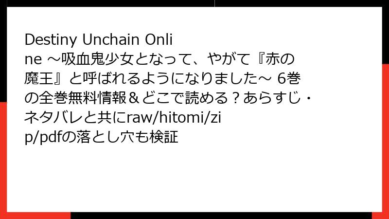 Destiny Unchain Online ~吸血鬼少女となって、やがて『赤の魔王』と呼ばれるようになりました~ 6巻の全巻無料情報&どこで読める?あらすじ・ネタバレと共にraw/hitomi/zip/pdfの落とし穴も検証