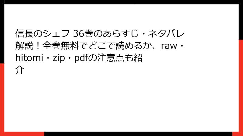 まとめると、『信長のシェフ』を海賊版で読むのは短期的なメリットより、リスクが上回ります。正規のプラットフォームで楽しむのが、安心で倫理的な選択。あなたのマンガライフを守るためにも、海賊版は避けましょう! 感想や体験談、コメントでシェアしてください。