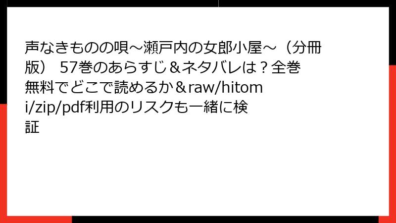 声なきものの唄~瀬戸内の女郎小屋~(分冊版) 57巻のあらすじ&ネタバレは?全巻無料でどこで読めるか&raw/hitomi/zip/pdf利用のリスクも一緒に検証