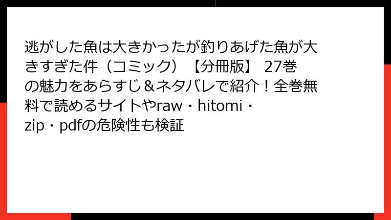 以上のように、海賊版サイトで『逃がした魚は大きかったが釣りあげた魚が大きすぎた魚が大きすぎた件(コミック)【分冊版】 27巻』を読むのは、法的・セキュリティ・経済的・品質的なリスクが大きすぎます。