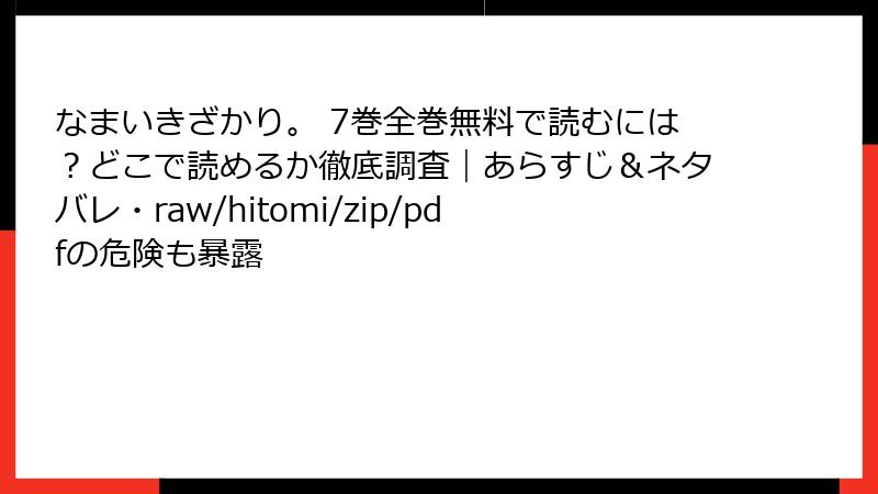 人気漫画「なまいきざかり。」をraw、hitomi、zip、pdf、漫画バンクなどの海賊版サイトで読むのは一見手軽ですが、深刻なリスクが伴います。この記事では、法的、セキュリティ、経済的側面から詳しく解説。公式ルートを選ぶ重要性を理解しましょう。