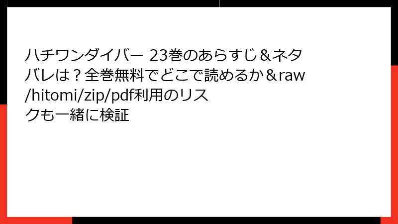 ハチワンダイバー 23巻を海賊版サイトで読むリスク:違法行為の隠れた危険性