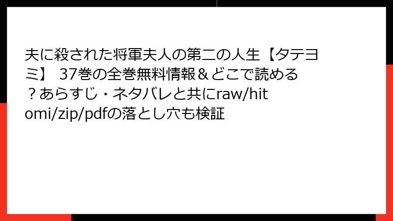こんにちは、漫画ファン向けの情報ブログをお届けするライターです。今日は、人気転生ファンタジー漫画『夫に殺された将軍夫人の第二の人生【タテヨミ】』を、raw、hitomi、zip、pdf、漫画バンクなどの海賊版サイトで読むことのリスクについて、詳しく掘り下げてお話しします。この作品は魅力的なストーリーで多くのファンを獲得していますが、海賊版サイトを利用するのは一見便利に見えて、実は深刻な問題を孕んでいます。法的・セキュリティ面を中心に、読み応えのある形で解説していきます。海賊版はクリエイターの権利を侵害する行為ですので、絶対に避けましょう。以下で具体的なリスクを複数セクションに分けて見ていきます。
