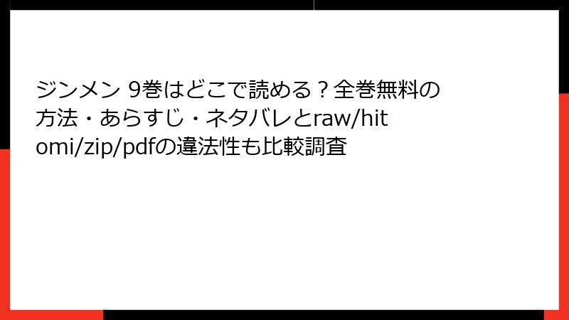 人気ホラー漫画『ジンメン』を無料で楽しみたいという誘惑から、海賊版サイトを利用する人も少なくありません。しかし、raw、hitomi、zip、pdf、漫画バンクなどの違法アップロードサイトで読む行為は、さまざまなリスクを伴います。この記事では、法的側面からセキュリティ、経済的影響までを詳しく解説。海賊版の魅力に隠れた落とし穴を知ることで、正しい選択を促します。ネタバレなしで、純粋にリスクに焦点を当ててお届けします。