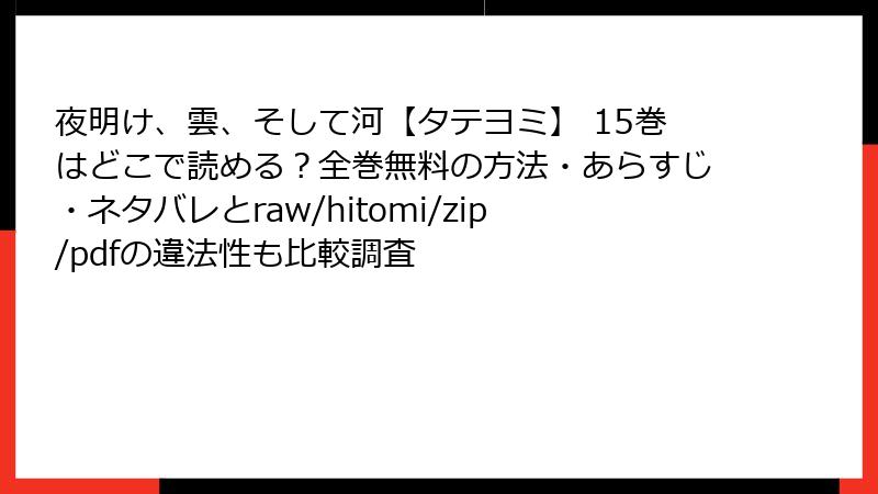 夜明け、雲、そして河を海賊版サイトで読むリスク:raw/hitomi/zip/pdf/漫画バンクなどの危険性