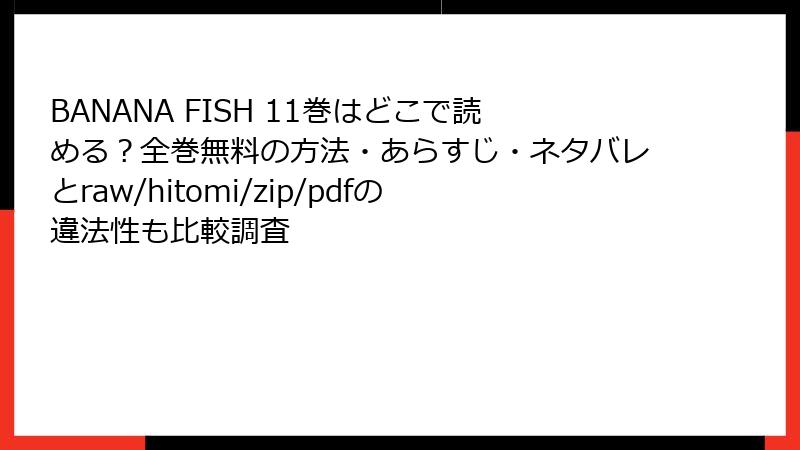 - The Risks of Reading BANANA FISH Volume 11 on Pirate Sites Like Raw, Hitomi, Zip, PDF, and Manga Bank