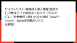 人気の異世界コミック『神の使いでのんびり異世界旅行 ~最強の体でスローライフ。魔法を楽しんで自由に生きていく!~【分冊版】(コミック) 4巻』を、無料で読みたいという誘惑に駆られる人もいるでしょう。しかし、raw、hitomi、zip、pdf、漫画バンクなどの海賊版サイトを利用するのは、さまざまなリスクを伴います。この記事では、そんな海賊版サイトの利用がもたらす法的、セキュリティ、品質面などの問題を詳しく掘り下げます。安易な利用が自分や業界に与える悪影響を理解し、賢い選択をしましょう。
