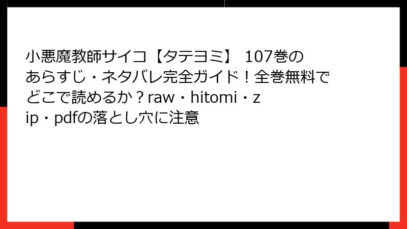 小悪魔教師サイコ【タテヨミ】 107巻のあらすじ・ネタバレ完全ガイド!全巻無料でどこで読めるか?raw・hitomi・zip・pdfの落とし穴に注意