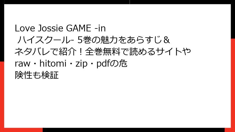 みなさん、こんにちは! ラブコメ電子書籍ハンターのブロガーです。今回は、ドキドキのGAMEが加速する『Love Jossie GAME -in ハイスクール-』5巻の電子書籍版が、どのサービスで読めるかを徹底調査しました。指定された人気サービスを中心に、配信状況、価格、キャンペーン、読みやすさまで詳しくお届け。白泉社の人気作だけに、配信先は豊富ですが、微妙な違いがあって面白いんです。未読の方は、まずは1巻から飛び込んでみて! ネタバレなしで、選び方のヒント満載でお送りします。さあ、ベストなプラットフォームを探しましょう。