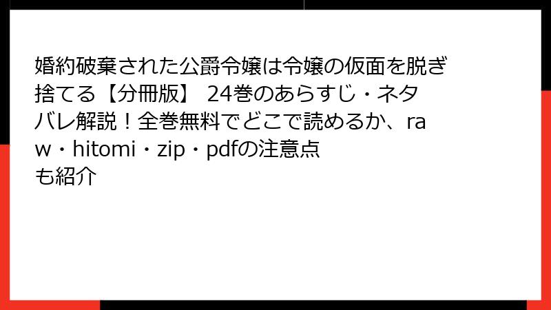婚約破棄された公爵令嬢は令嬢の仮面を脱ぎ捨てる【分冊版】 24巻のあらすじ・ネタバレ解説!全巻無料でどこで読めるか、raw・hitomi・zip・pdfの注意点も紹介