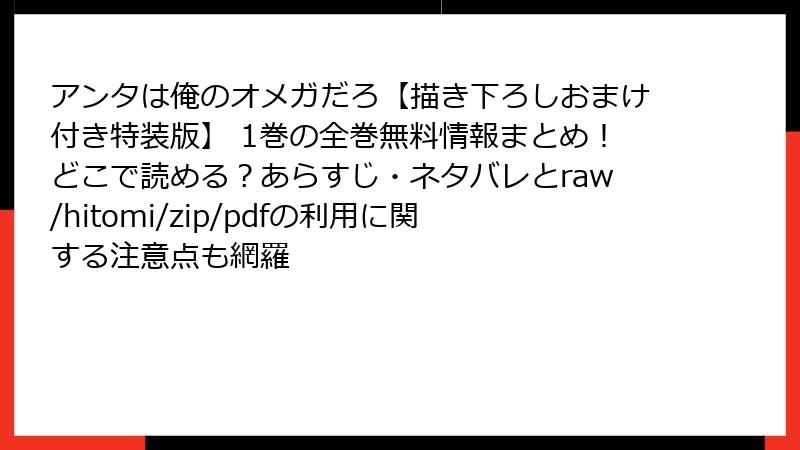 大好きな漫画『アンタは俺のオメガだろ』を無料で読みたい衝動に駆られる気持ちはわかるけど、海賊版サイトを利用するのは本当に危ない選択だよ。raw、hitomi、zip、pdf、漫画バンクといった違法アップロードサイトは、一見便利に見えるけど、隠されたリスクが山積み。今回は、そんな海賊版サイトで漫画を読むことの詳細な危険性を、法的・セキュリティ面から深掘りしていく。知らずに使っていた人も、これを読んで考え直してほしい。安全に楽しむためのヒントも交えつつ、ブログ風に詳しく解説するよ。