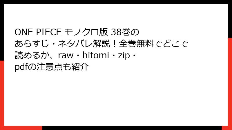 ONE PIECE モノクロ版 38巻を海賊版サイトで読むリスク