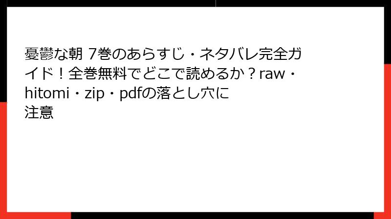 憂鬱な朝 7巻を海賊版サイトで読むリスクを詳しく解説
