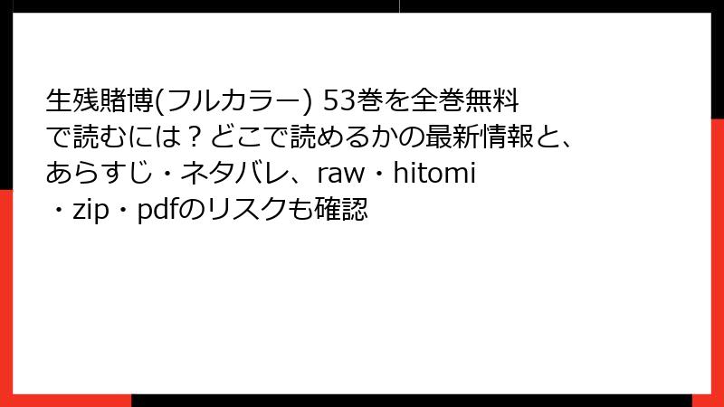 生残賭博(フルカラー) 53巻を全巻無料で読むには?どこで読めるかの最新情報と、あらすじ・ネタバレ、raw・hitomi・zip・pdfのリスクも確認