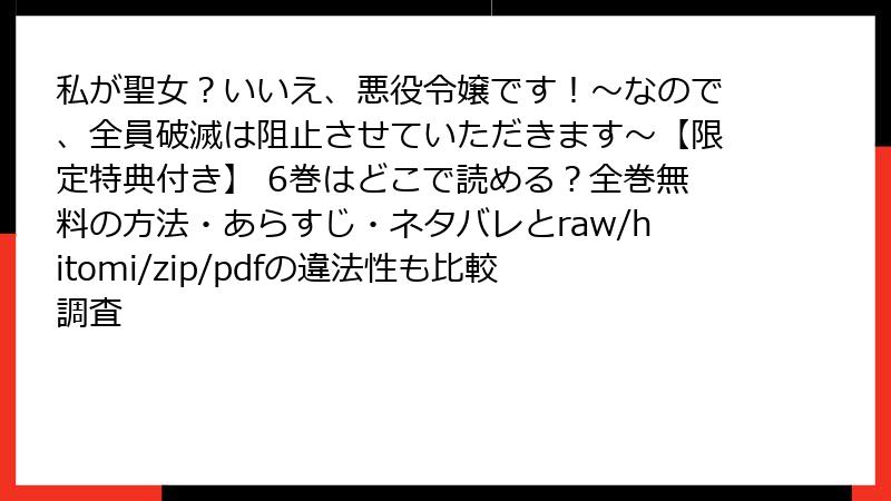 私が聖女?いいえ、悪役令嬢です!~なので、全員破滅は阻止させていただきます~【限定特典付き】 6巻はどこで読める?全巻無料の方法・あらすじ・ネタバレとraw/hitomi/zip/pdfの違法性も比較調査