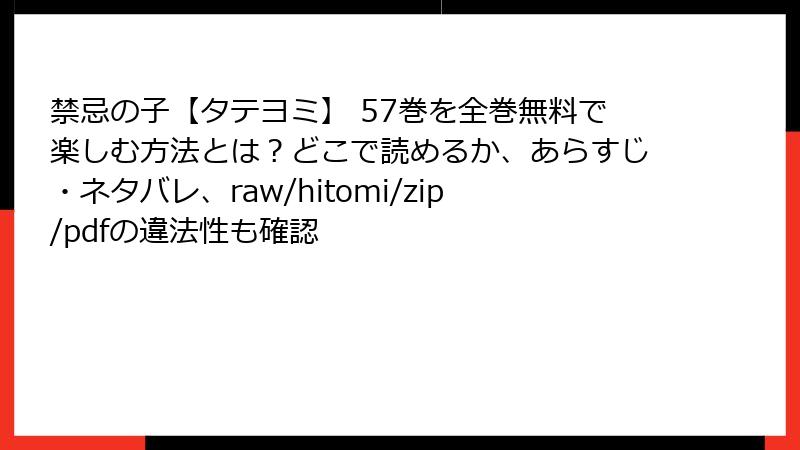 禁忌の子【タテヨミ】 57巻を全巻無料で楽しむ方法とは?どこで読めるか、あらすじ・ネタバレ、raw/hitomi/zip/pdfの違法性も確認
