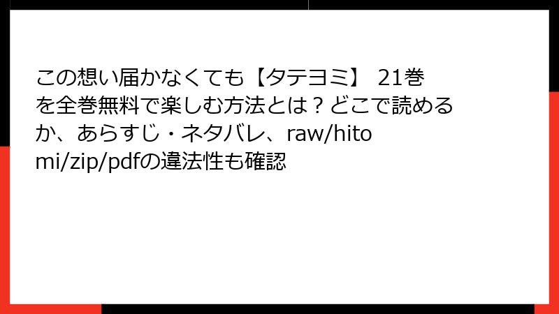 韓国発の人気BL漫画『この想い届かなくても【タテヨミ】』は、切ない恋愛模様が魅力の作品ですが、正規ルート以外で読むのは危険がいっぱい。特にraw、hitomi、zip、pdf、漫画バンクなどの海賊版サイトを利用すると、思わぬトラブルに巻き込まれる可能性があります。この記事では、そんな海賊版サイトのリスクを法的、セキュリティ、経済的・倫理的観点から詳しく解説。読み応えのある内容で、なぜ避けるべきかを深掘りします。無料の裏側に潜む落とし穴を知り、正しい楽しみ方を考えましょう。