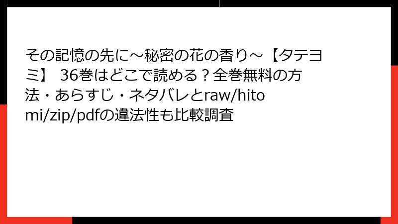 『その記憶の先に~秘密の花の香り~』のような素晴らしい作品を、心置きなく楽しむためにも、リスクを理解し、正しい選択を。あなたの読書体験が、より豊かで安全なものになりますように。