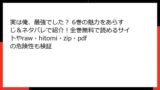 rawやhitomi、zipファイル形式の海賊版サイトは、セキュリティが脆弱で、悪意あるコードが仕込まれていることが多いです。漫画をダウンロードしたり閲覧したりする際に、ウイルスがデバイスに侵入し、個人情報が盗まれる危険性があります。