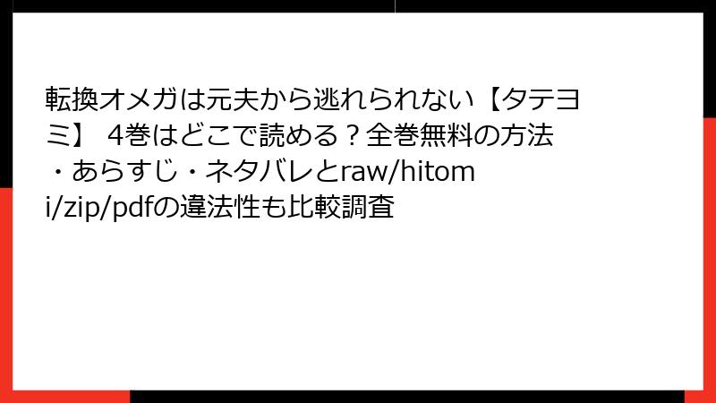 海賊版サイトで『転換オメガは元夫から逃れられない』を読むのは、法的・セキュリティ・品質・倫理の観点から多大なリスクを伴います。