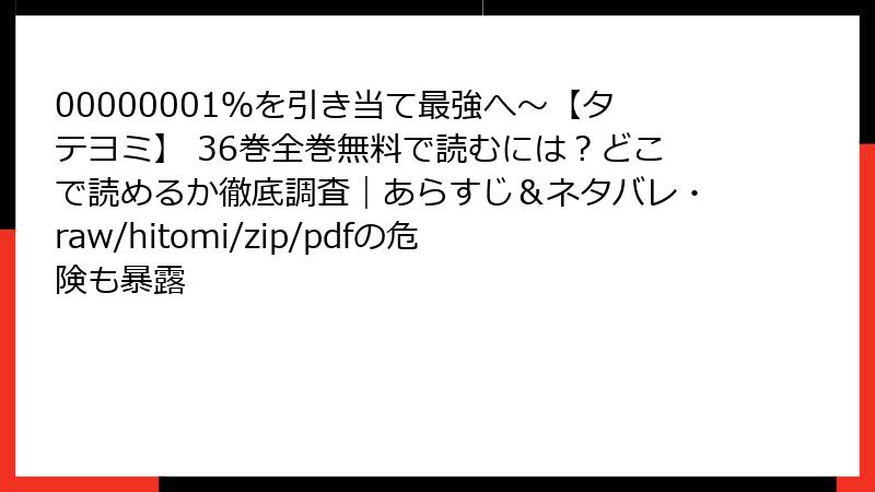 00000001%を引き当て最強へ~【タテヨミ】 36巻全巻無料で読むには?どこで読めるか徹底調査|あらすじ&ネタバレ・raw/hitomi/zip/pdfの危険も暴露