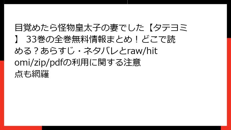 人気の転生ファンタジー漫画『目覚めたら怪物皇太子の妻でした』を、raw、hitomi、zip、pdf、漫画バンクなどの海賊版サイトで無料で読もうと考える人もいるかもしれません。しかし、これらのサイトを利用することは大きなリスクを伴います。2021年の著作権法改正以降、違法ダウンロードの罰則が強化されており、単なる利用者でも逮捕の可能性があります。