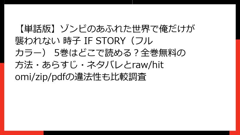 【単話版】ゾンビのあふれた世界で俺だけが襲われない 時子 IF STORY(フルカラー) 5巻を海賊版サイトで読むリスク