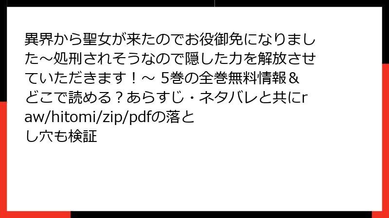 - 『異界から聖女が来たのでお役御免になりました~処刑されそうなので隠した力を解放させていただきます!~』をraw/hitomi/zip/pdf/漫画バンクなどの海賊版サイトで読むリスク