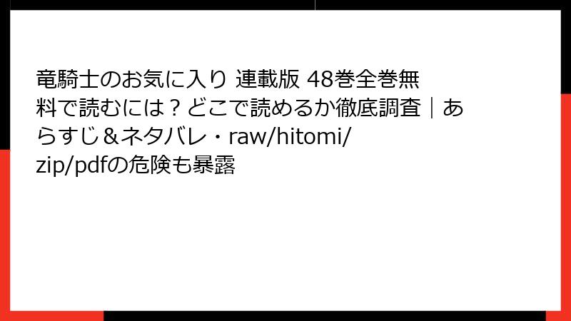 人気のファンタジーラブストーリー『竜騎士のお気に入り』を、raw、hitomi、zip、pdf、漫画バンクといった海賊版サイトで読むのは一見手軽に思えるかもしれません。しかし、これらのサイトを利用することは多大なリスクを伴います。以下では、法的側面からセキュリティ、品質、倫理的影響までを詳しく解説します。海賊版はクリエイターの権利を侵害する行為であり、避けるべき選択です。