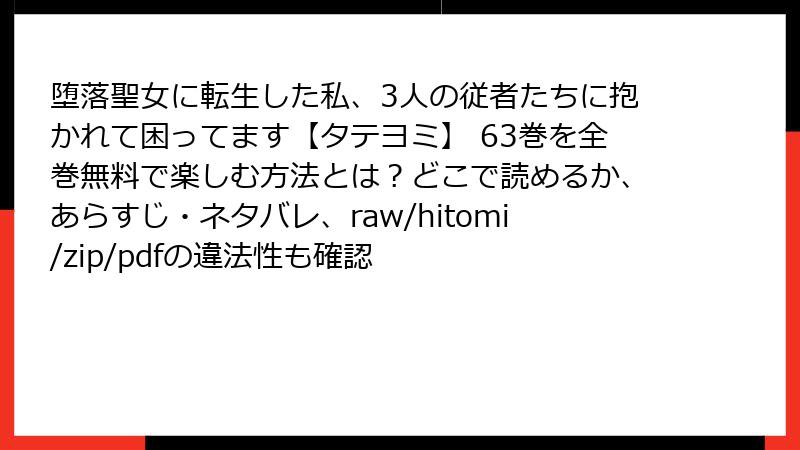 人気の転生ファンタジーロマンス漫画『堕落聖女に転生した私、3人の従者たちに抱かれて困ってます』。タテヨミ形式で配信され、魅力的なイケメンたちとヒロインの関係性が話題の作品です。ここでは第63話の詳細なあらすじを、ネタバレ満載で紹介します。まだ読んでいない方はご注意ください!