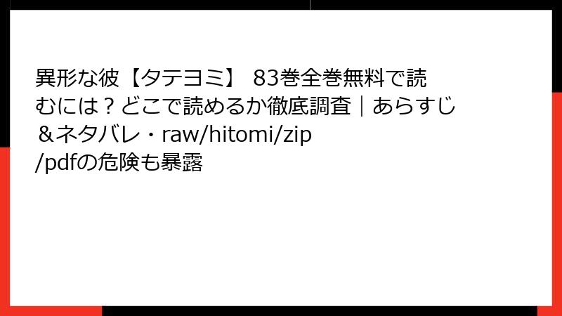 raw、hitomi、zip、pdf、漫画バンクなどの海賊版サイトで『異形な彼【タテヨミ】』を読むのは、短期的には無料ですが、長期的には法的・セキュリティ・品質・倫理的な多大なリスクを伴います。これらの危険性を理解し、公式ルートでの利用を検討することを強くおすすめします。安全でクリーンな読書環境を守るためにも、海賊版は避けましょう。