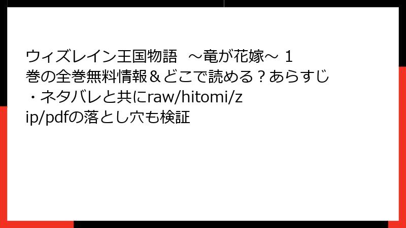 人気のファンタジー漫画『ウィズレイン王国物語 ~竜が花嫁~』を、raw、hitomi、zip、pdf、漫画バンクなどの海賊版サイトで読むのは一見手軽ですが、重大なリスクが伴います。この記事では、そんな違法サイト利用の危険性を詳しく解説します。法的問題からセキュリティの脅威まで、読み進めながら自身の行動を見直してみてください。海賊版はクリエイターの権利を侵害し、業界全体に悪影響を及ぼします。