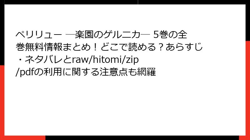 海賊版サイトで漫画を読むリスク:『ペリリュー ─楽園のゲルニカ─』をraw/hitomi/zip/pdf/漫画バンクなどで閲覧する場合