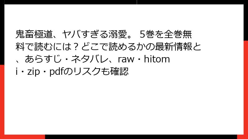 『鬼畜極道、ヤバすぎる溺愛。』をraw/hitomi/zip/pdf/漫画バンクなどで読むのは、一見お得ですが、法的・セキュリティ・プライバシー・品質の多重リスクが伴います。2025年の今、ネットの監視は厳しく、被害事例も増えています。安全第一で正規版を楽しむことを強くおすすめします。あなたの選択が、作品の未来を左右するかもしれません。