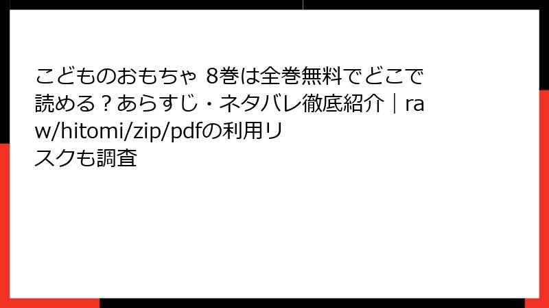 人気漫画「こどものおもちゃ」を、raw、hitomi、zip、pdf、漫画バンクなどの海賊版サイトで読むのは、手軽に見える一方で、さまざまなリスクを伴います。この記事では、そんな海賊版サイト利用の危険性を詳しく解説します。法的問題からセキュリティの脅威、品質面の落とし穴までを掘り下げ、なぜ正規ルートをおすすめするのかを考察します。海賊版は一時的な便利さを提供するかもしれませんが、長期的にはユーザー自身に悪影響を及ぼす可能性が高いのです。