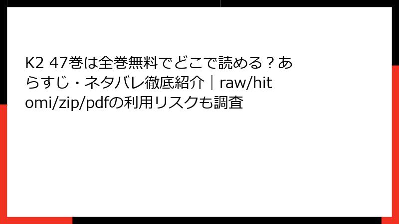 人気漫画『K2』を無料で楽しみたいという誘惑は強いですが、raw、hitomi、zip、pdf、漫画バンクなどの海賊版サイトを利用するのは大きなリスクを伴います。これらのサイトは著作権を無視した違法コンテンツを配信しており、ユーザーも巻き込まれる可能性があります。この記事では、法的、セキュリティ、品質、倫理的側面から詳しくリスクを解説します。海賊版は一見便利ですが、長期的に見て損失が大きいことを理解しましょう。