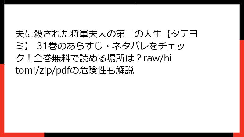 夫に殺された将軍夫人の第二の人生【タテヨミ】31巻の詳しいあらすじと魅力