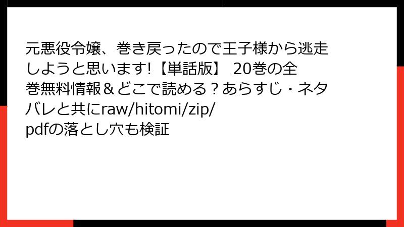 元悪役令嬢、巻き戻ったので王子様から逃走しようと思います!【単話版】をraw/hitomi/zip/pdf/漫画バンクなどの海賊版サイトで読むリスク