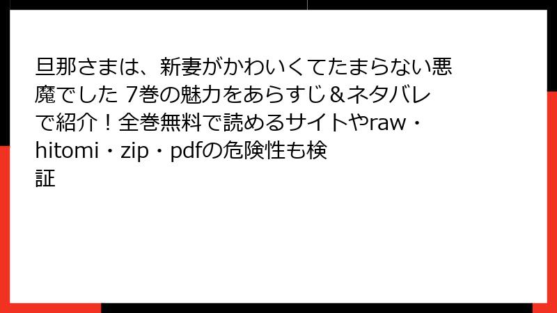人気の漫画やコミックを無料で読めるとされる海賊版サイト、例えばraw形式のスキャン画像、hitomiのようなアダルト向け共有サイト、zipやpdfのダウンロード形式、または漫画バンクのような違法アップロードサイトは、著作権を無視したコンテンツを扱っています。これらのサイトで『旦那さまは、新妻がかわいくてたまらない悪魔でした』のような作品を読む行為は、便利に見えても多大なリスクを伴います。以下では、法的、セキュリティ、プライバシー、品質、倫理的な観点から詳しく解説します。利用を検討している方は、まずは正規のプラットフォームで購入することを強くおすすめします。