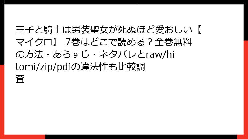 『王子と騎士は男装聖女が死ぬほど愛おしい【マイクロ】』のような人気漫画を、raw、hitomi、zip、pdf、漫画バンクなどの海賊版サイトで無料で読もうとする人は少なくありません。これらのサイトは、著作権者の許可なく漫画をアップロードし、ダウンロードや閲覧を可能にしています。一見便利に見えますが、利用には深刻なリスクが伴います。この記事では、法的・セキュリティ・プライバシーなどの観点から詳しく解説します。利用を検討している方は、ぜひ参考にしてください。