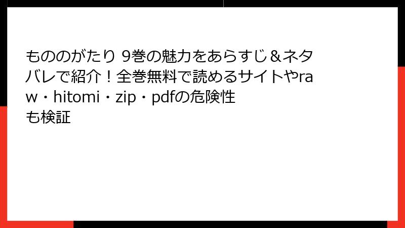 人気漫画『もののがたり』を、raw、hitomi、zip、pdf、漫画バンクなどの海賊版サイトで無料で読もうとする人は少なくありません。しかし、これらのサイトを利用することは、見た目の利便性とは裏腹に深刻なリスクを伴います。この記事では、そんな海賊版サイトの利用に伴うさまざまな危険性を、ブログ風に詳しく解説します。法的問題からセキュリティの脅威まで、読み応えのある内容でお届けします。
