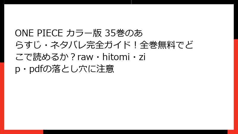 の見出しタグから始めて、ブログ記事形式で出力して。複数の タグを使用して、読み応えがあるように。HTMLで出力。 や などの箇条書きのHTMLタグや、tableタグも使用してOK。ただし、リンクやURLは、絶対に、挿入しない。 ONE PIECE カラー版 35巻を海賊版サイトで読むリスク:潜在的な危険を徹底解説