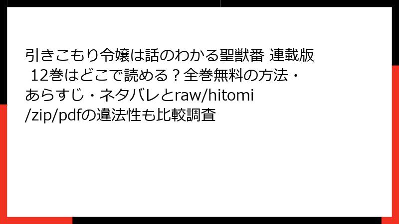 この記事では、ファンタジーコミック「引きこもり令嬢は話のわかる聖獣番」をraw、hitomi、zip、pdf、漫画バンクなどの海賊版サイトで読むことのリスクを詳しく解説します。無料で手軽に楽しめそうに思えるかもしれませんが、実は深刻な問題が潜んでいます。ブログ形式で、法的・セキュリティ面を中心に深掘りし、なぜ避けるべきかを考察。海賊版利用を考えている方は、ぜひ参考にしてください。